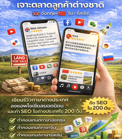 โปรโมทที่ดินผ่านหลายช่องทาง ทั้งเว็บไซต์ในไทย และต่างประเทศ โซเชียล และวิดีโอสั้น เพิ่มการเข้าถึงมากกว่าเว็บประกาศทั่วไป
